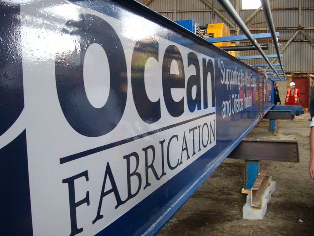 Ocean's new 16ton overhead crane minutes away from being hoisted into position.