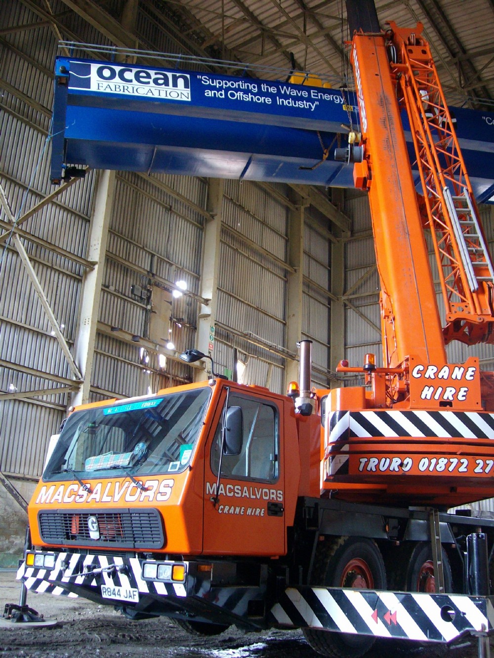 The new beam crane being hoisted into position. There was only a few centimeters between the top of the boom and the roof cladding.