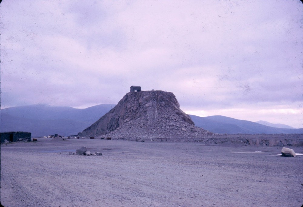 According to the manager, even as they were working away at the mountain, they were always required to leave a distinctive "pimple" on the top as it was a landmark for shipping - something that seems to have been abandoned in more recent times! This was the pimple, all that remained of the next higher floor - you can see the outline of the incline drumhouse on the top.