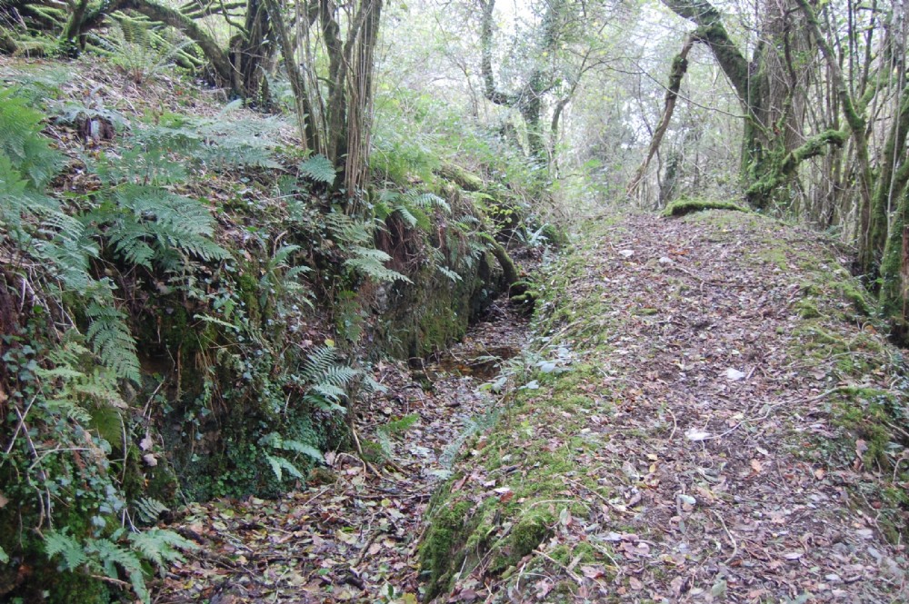 The water course has the appearance of travelling up hill to the mine along rock cut channels, embanked sections and across a small valley via a long gone wooden aqueduct.