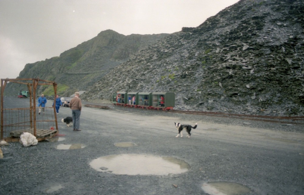 Looking south west towards Hollands lower mill. Through the metal frame you can see the posed loco which was at the top of a short incline which connecetd to the mill.