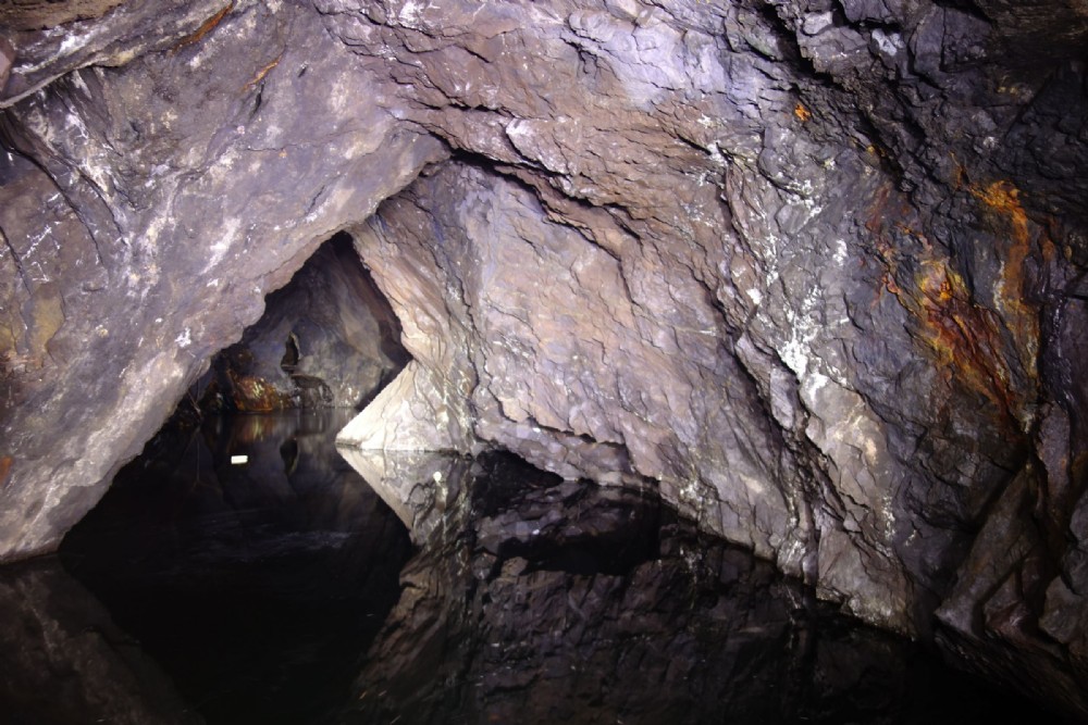 A good evening, in good company and nice weather brought six of us onto the Llyn to take a look at this mine. Changing into our wetsuits we set off for the levels, the first one being small and almost coffin level like in shape, my wetsuit was now getting uncomfortable and looked like a pair of tights. We then had a mooch around an open stope accessed by another rather small, round level. A tunnel at the base of this stope eventually lead to a rise. We then head down to the main pocket of ore and haulage gear, and got in the water, or rather, slipped in, and upon swimming past beer cans in the dark, gloomy water, reaching the other side to find more rubbish, we set off back, carrying with us some bits of old car which Willy had found. The sunset after made a nice end to the trip