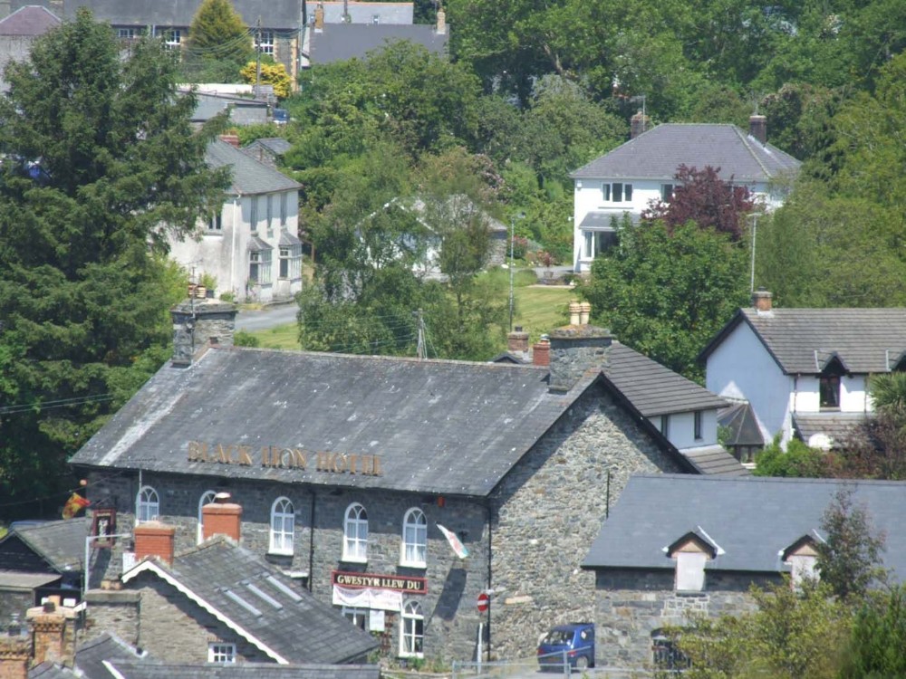 Although not strictly an 'historic' photograph I have included it here so as to provide a comparison with the 1872 drawing. The large white house on the left, "Glenydd" corresponds to the managers house, farest away of the terrace of wooden cladded buildings shown on the left of the drawing. Behind the crusher house is the mine smithy, this building still exists and is the owner garage, the small white building to the right of Glenydd. The deep adit portal is between these buildings and below the tarmac drive at the edge of the lawn.