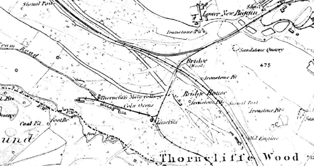 Thorncliffe Main with its tramway connection and coke ovens as depicted on the 1850 Ordnance Survey map.