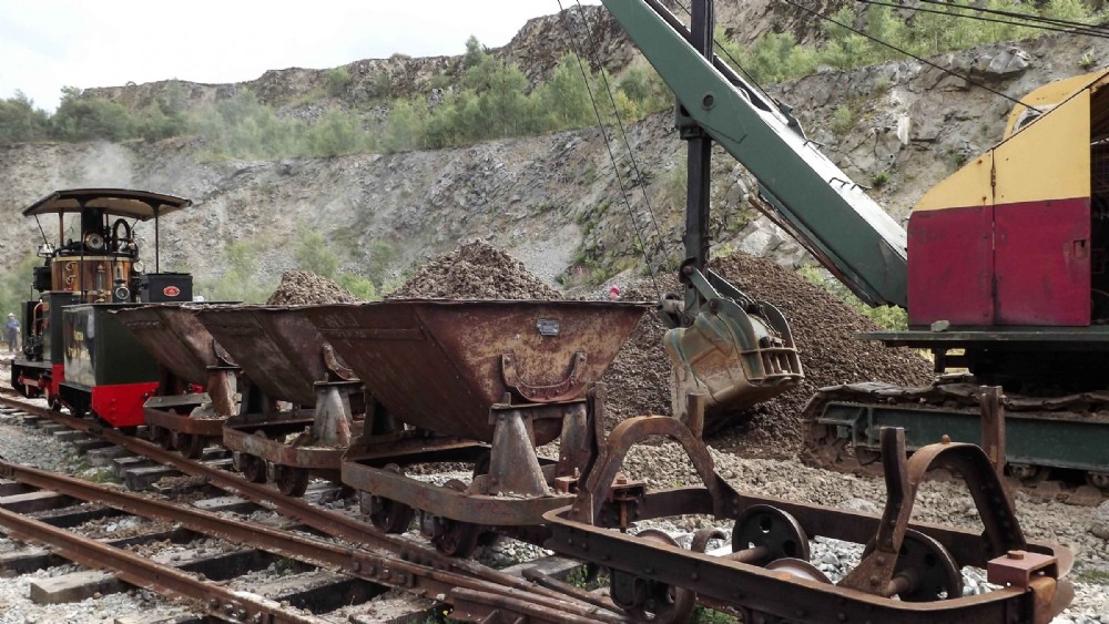 Stone from the quarry loaded onto Hudson rugga wagons and used as ballast to extend the two foot railway