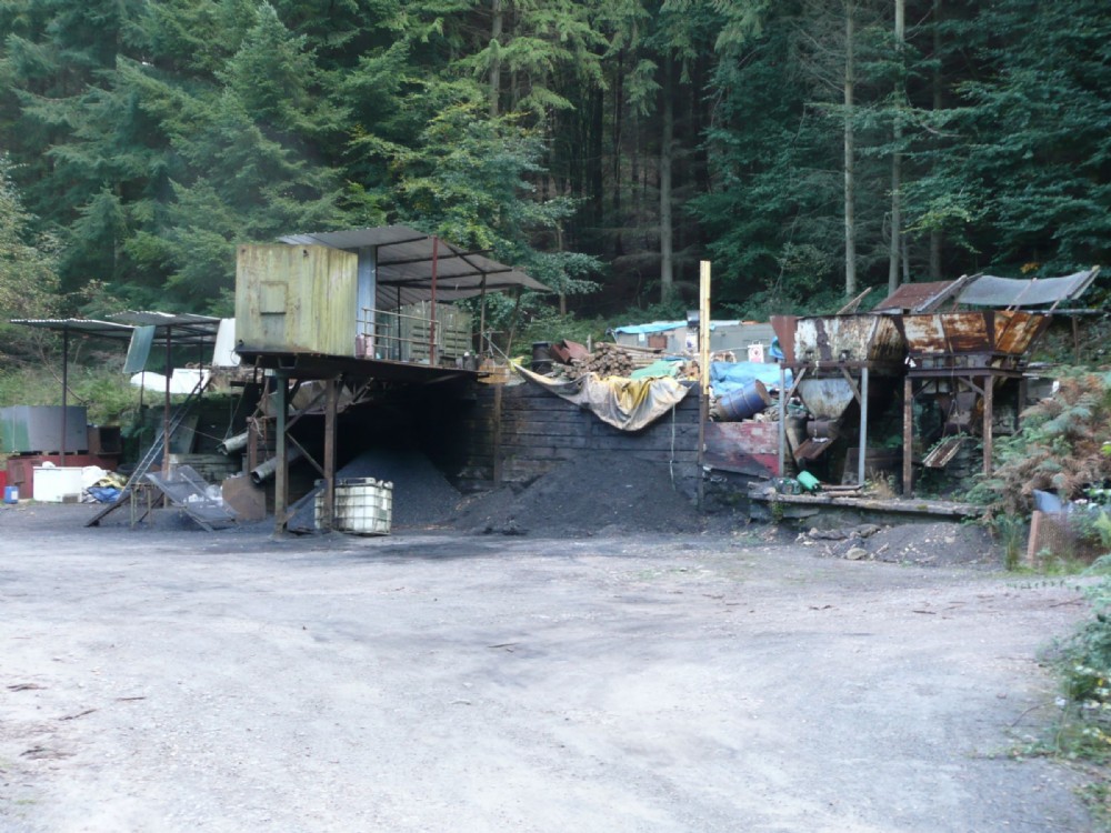 Tipping dock and grading plant on the bank, disused bagging hoppers to the right.