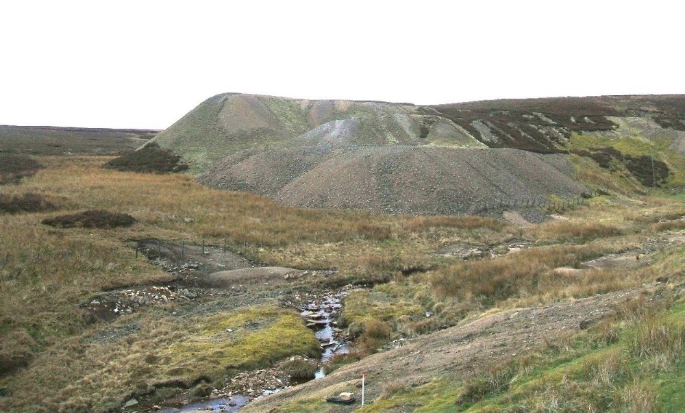 The end of the huge trammed out tailings which stretch over a quarter of a mile from the mine entrances.