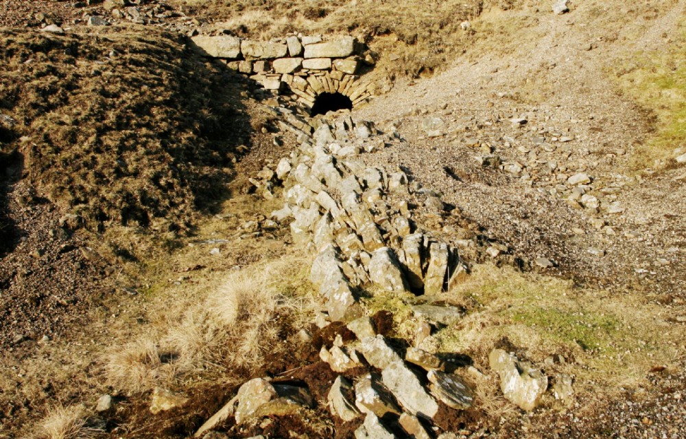 A short section of cut-and-cover level shows the outside of the arched stonework.