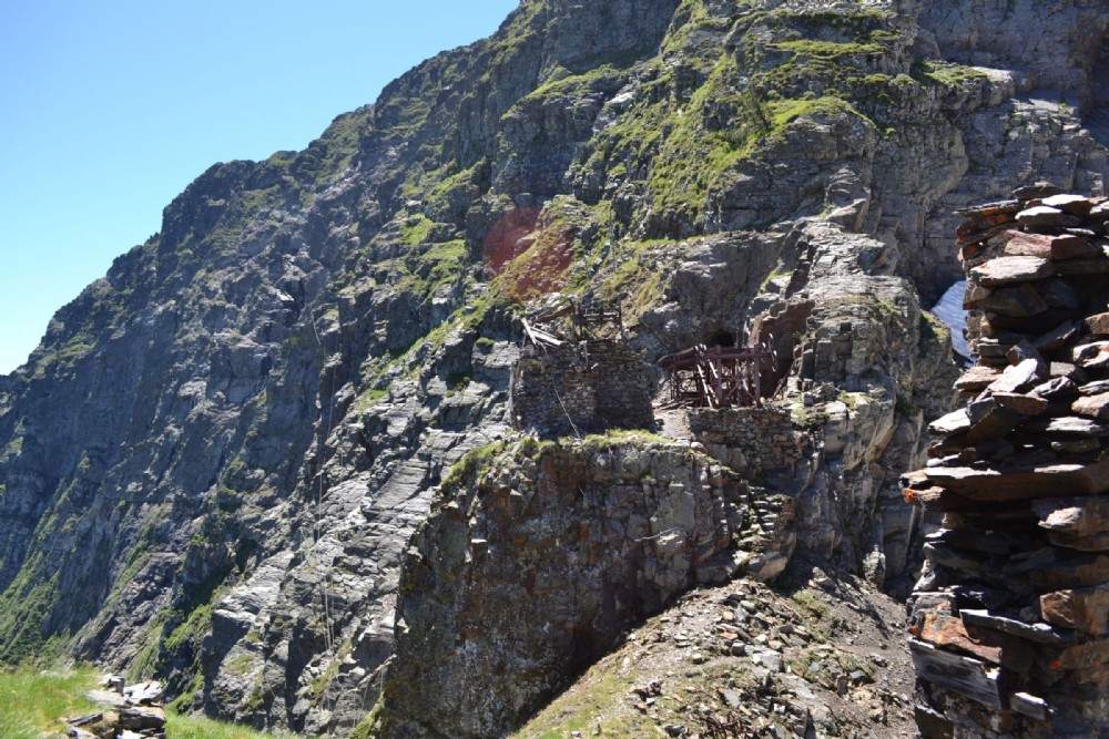 The adits are ranged up a vertical rock face requiring climbing equipment to safely access.