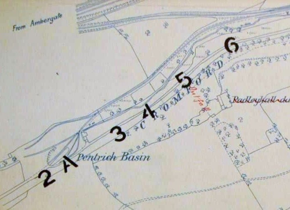 Note track layout around the basin. I suggest this is the original plateway layout before conversion to 'standard guage'.