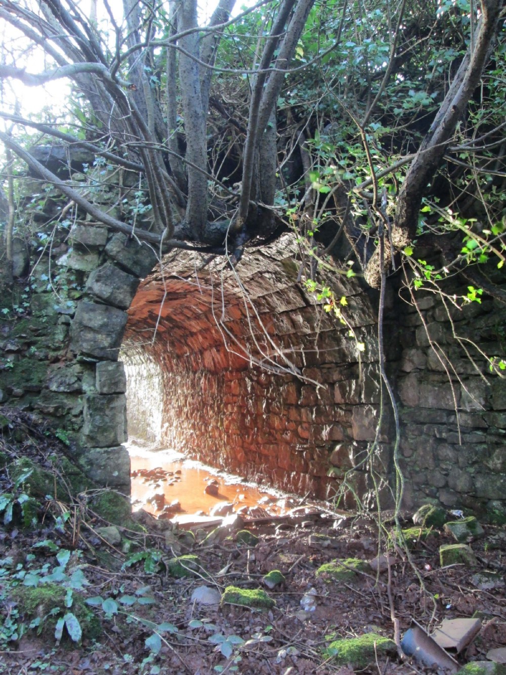 The narrow gague tramway passing under the Whinfield road. Morning sun reflected from red mud.