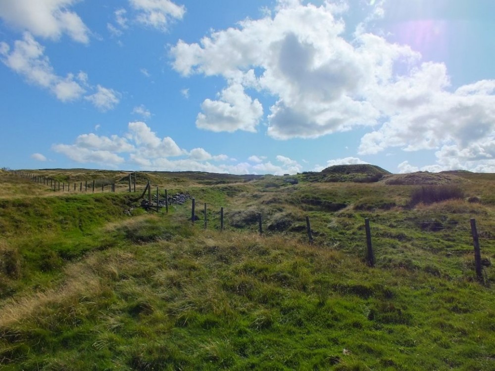 View of tramway embank, part of it is stone work, with the pit mound in the background
