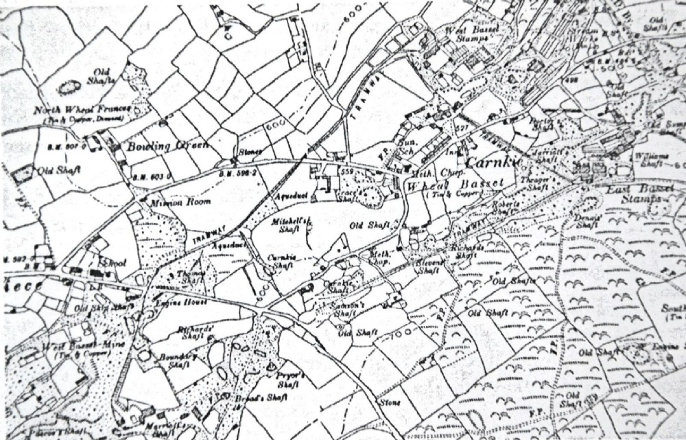The tramway system from the 1906 survey 6 inch OS map LX111 SW. The extension to Marriott's Shaft had not yet been completed.