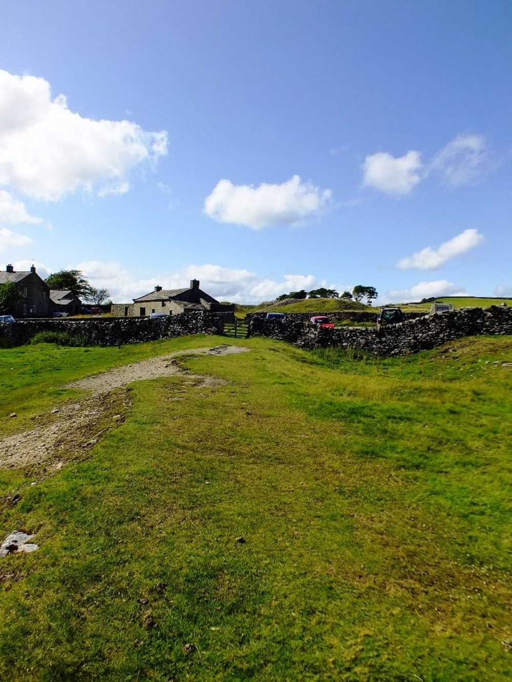 Line of tramway with some stone sleeper blocks shown, and Yarnbury House (Old Mine Agents House) in the background