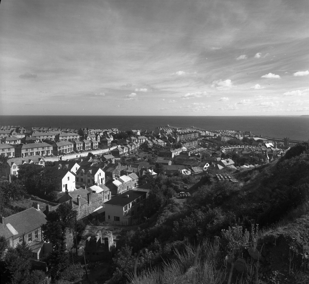 View from Trenwith Burrows showing remains of ball mill (bottom left) and machinery bases.