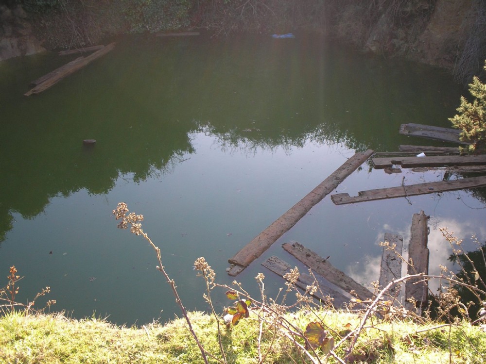 Flooded and collapsed collar of Trevarthian Downs Engine Shaft showing shaft timbers cut and recessed.