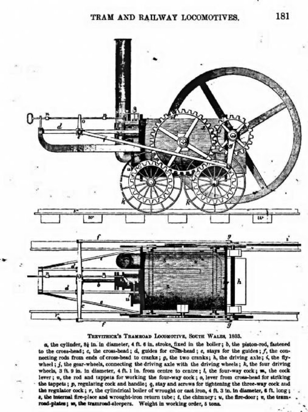 Trevithick's Tramway Locomotive, South Wales, 1803.