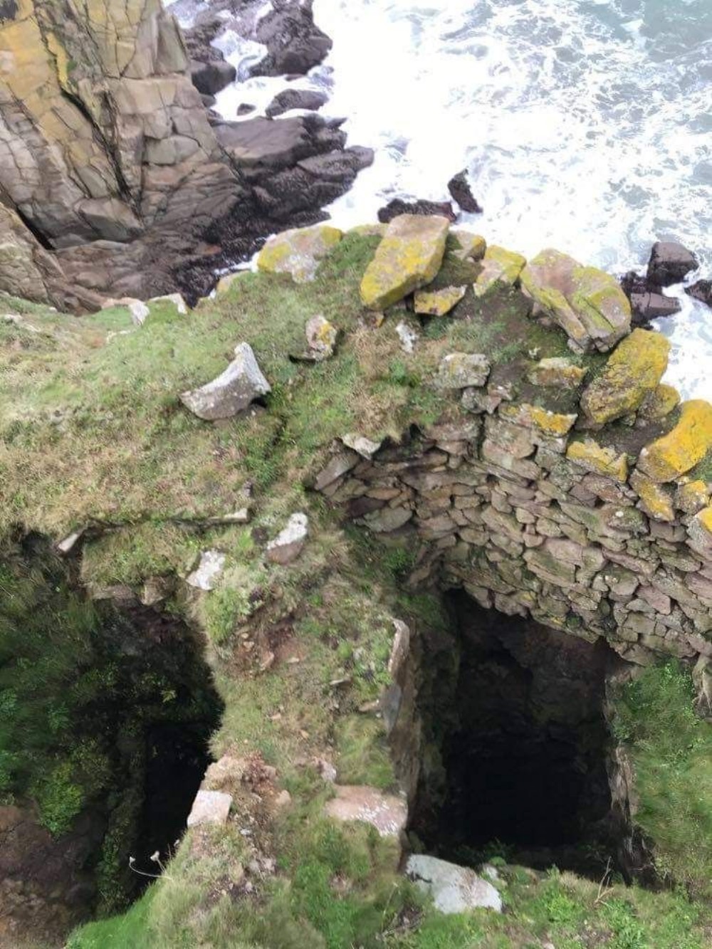 The 2 shafts at wheal Trewavas. One can still be accessed via the sea cave below.