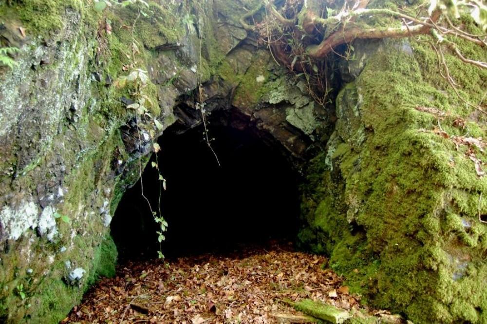 Small trial level between Allt cwmhenog quarry and main workings. This is the top level and extends for a few meters. The roof just inside the entrance is of slate lintels.