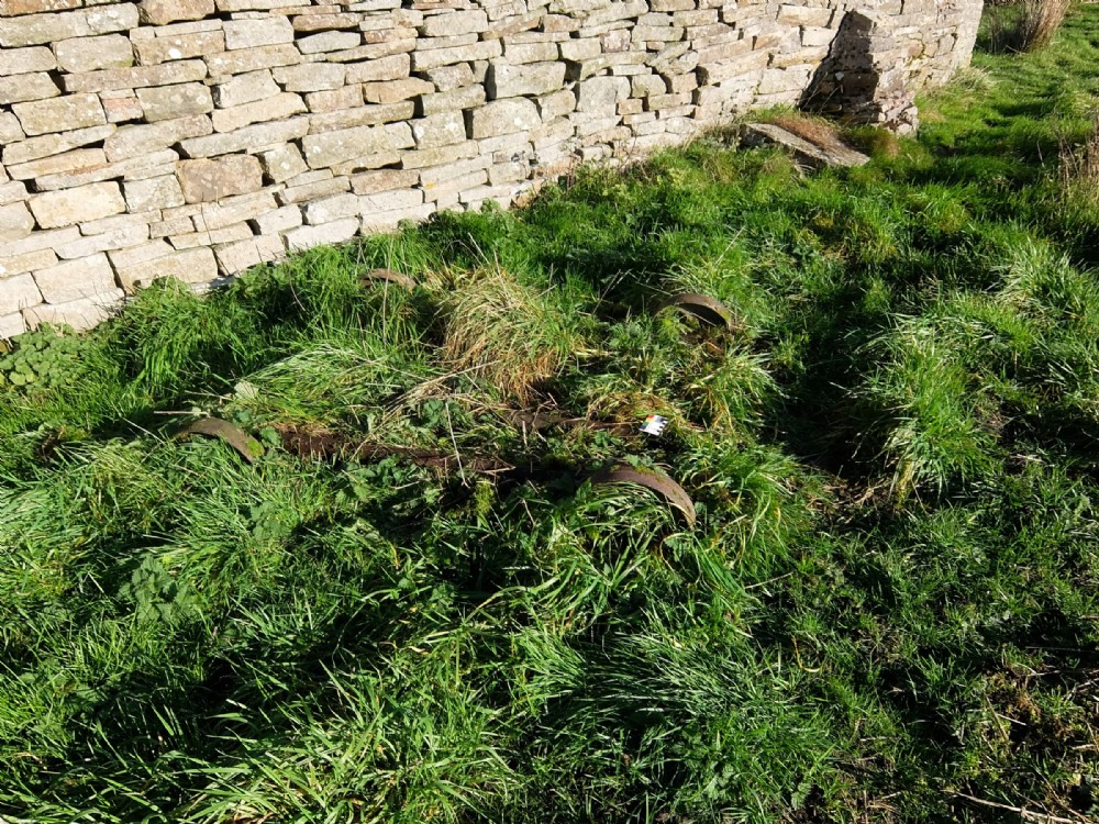 4 wheeled iron trolley, well overgrown with grass and moss. Could have been part of the Brickworks?