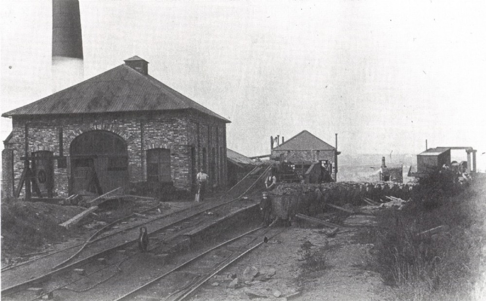 A full set of wagons is about to be sent down the self acting incline from Trustee Drift to Low Drum, the incline brakedrum housing can be seen on the right of the photo.