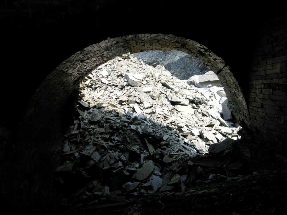 Looking to daylight from with the recently uncovered section of the Tuxford incline.
