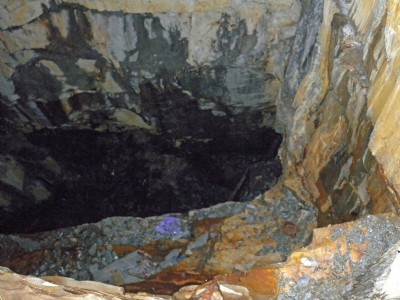 A short section of tunnel leads to an underground chamber, not sure if the chamber connects to any open pit working