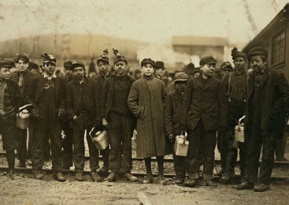 All these, including boys in middle and left end of photo, work underground in the Bliss Colliery of the D.L.&W