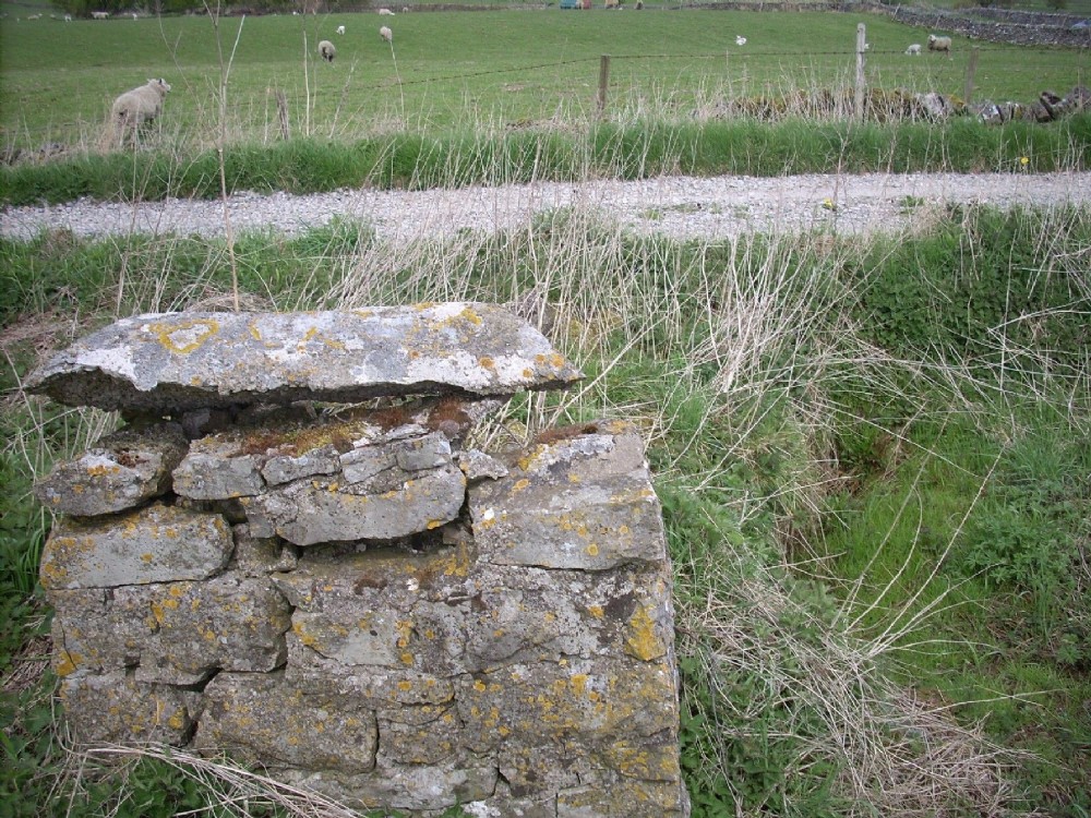 This structure may be related to the sough tail of Old Grove Sough. The shaft hillock are in the field at the back of the photo. This structure as ochreous water at the base and is offset slightly from the line of the hillocks (24 April 2009)