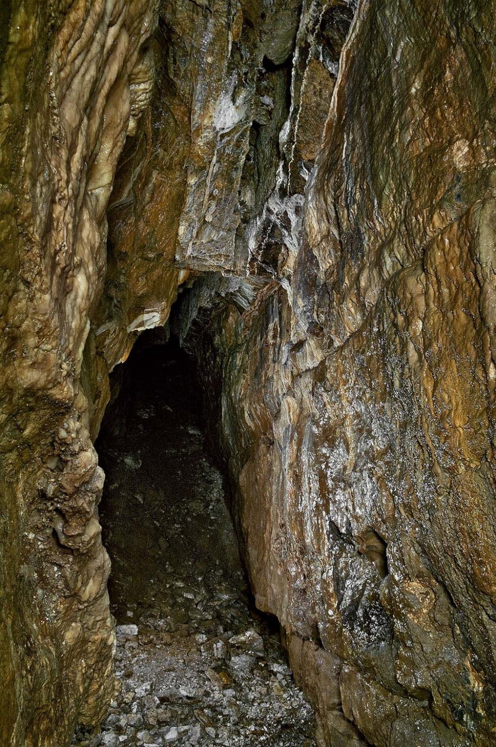The Upper Chamber, looking east from the ledge. The shaft down to the lower levels is just out of shot at lower right. At the far end of the upper chamber is a rudimentary stone staircase which leads into breakdown and a possible run-in shaft.