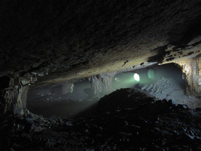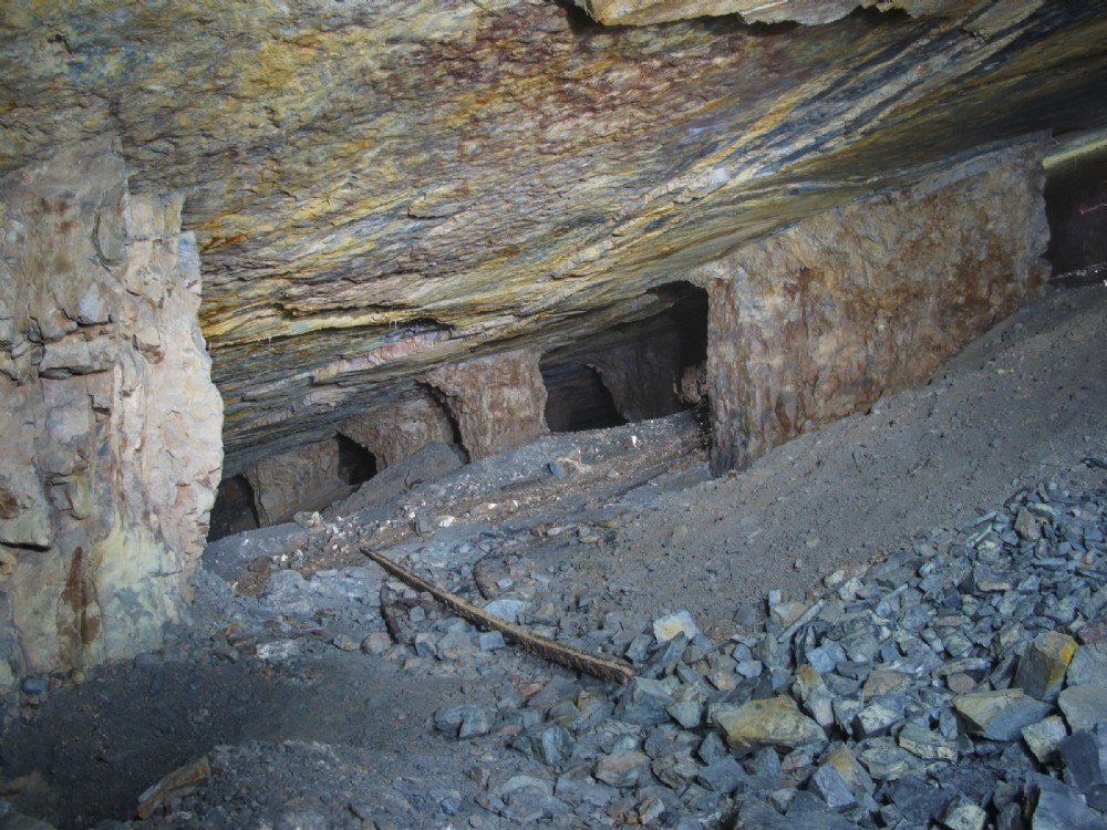 The main chamber with showing `Pillar and Stall' method of mining.
