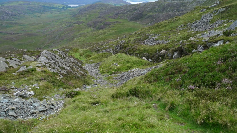 Looking down the line of the upper incline. The tips on the right of this with the line of workings on the right of the tips.