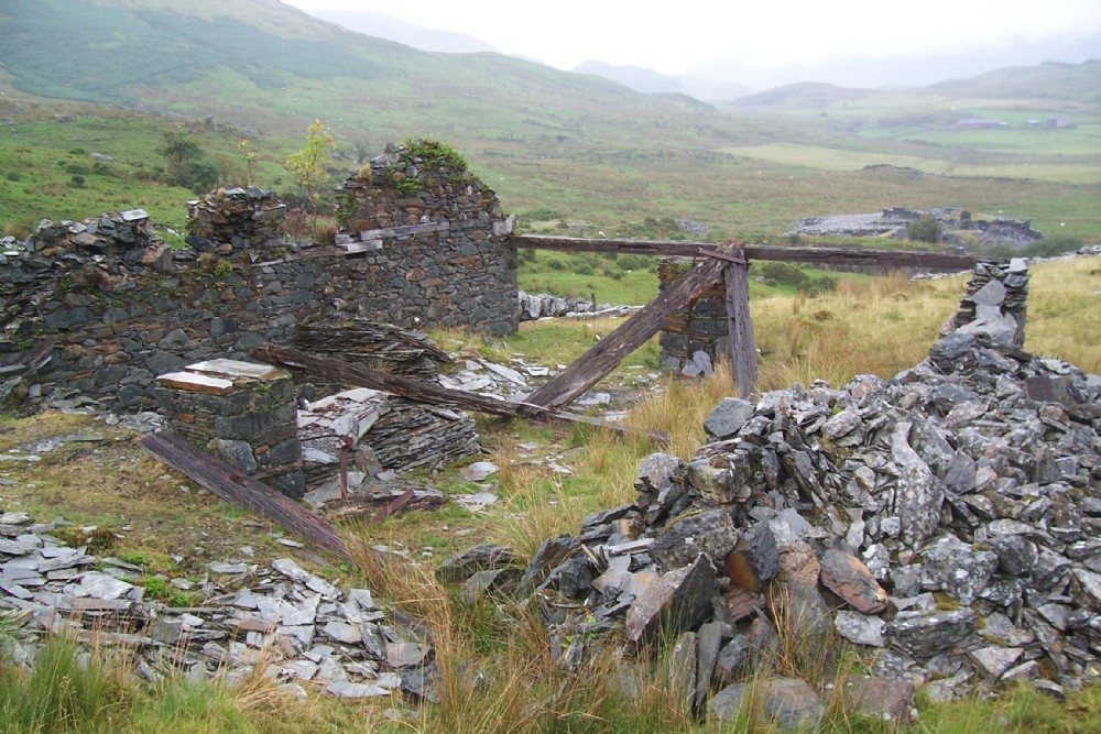 My guess is the power source for the mill would be in the lean-to outside the left wall of the mill, with a lineshaft along near the front (going through the wall where the wooden bearing mounts are) with belts transferring the drive back to the saw tables inside.
