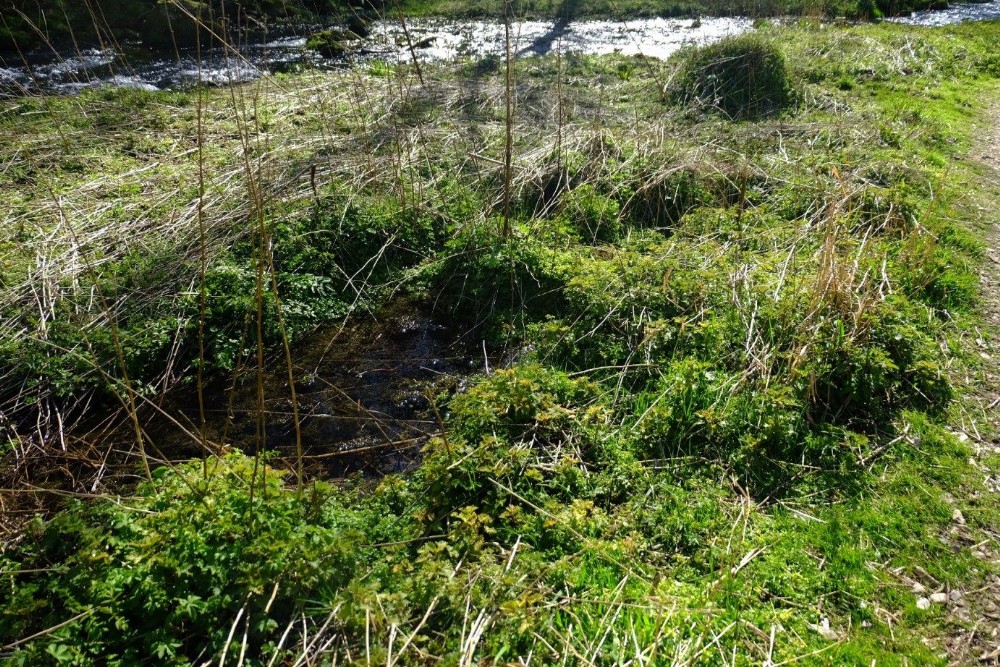 This upwelling appears to have some evidence of a stone slab roof (possibly collapsed) which is overgrown but can just about be made out. This is approx 150m downstream of Smallpenny Adit