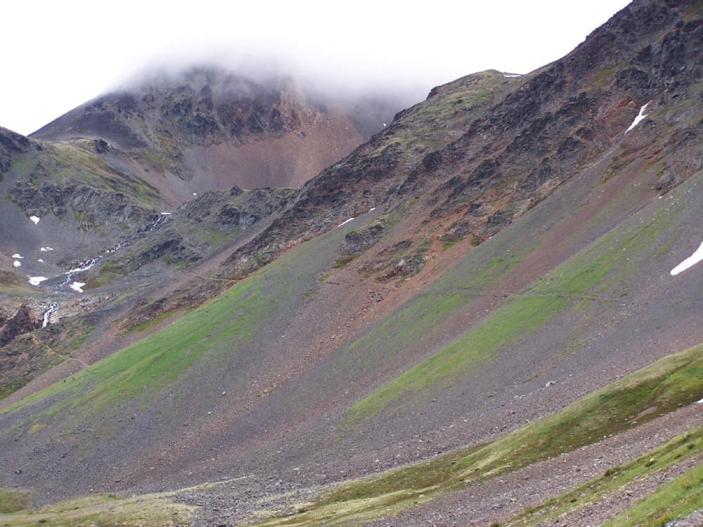 Orange coloured staining centre right shows the area that the cables from the winding gear ran up to from the valley floor just out of shot lower left of photo.