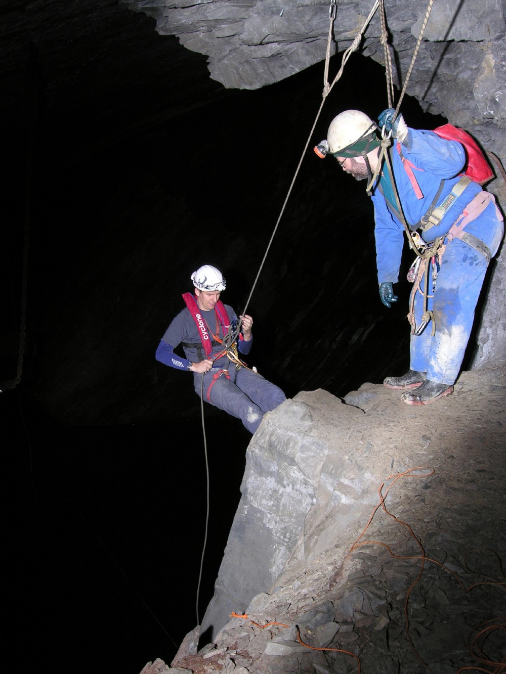 Vanoord begins his descent into the flotilla of waiting dinghies.