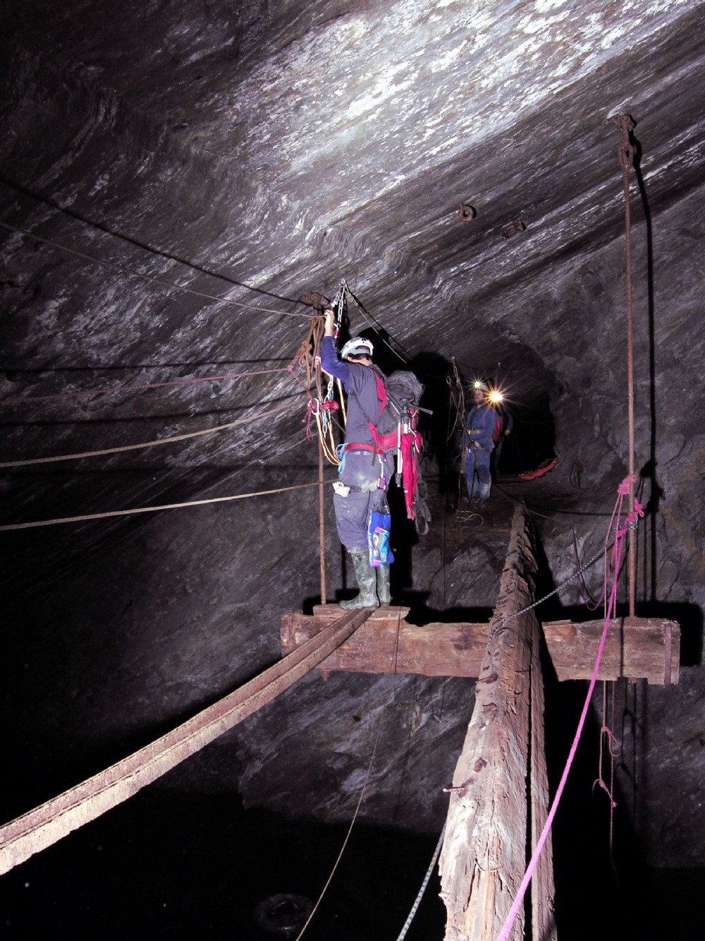 Vanoord displays just how many slings and karabiners he bought with him for exactly this purpose...