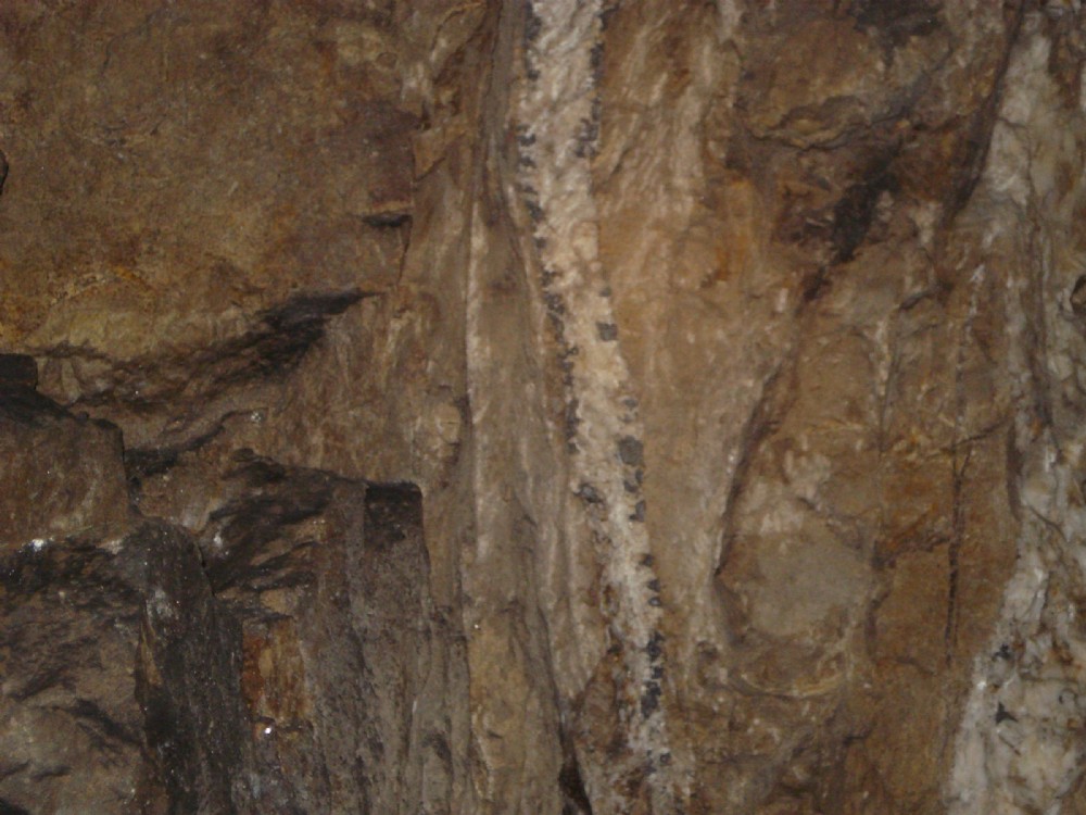 Just next to the way through to the upper levels from the main chamber, a vein actually containing lead!