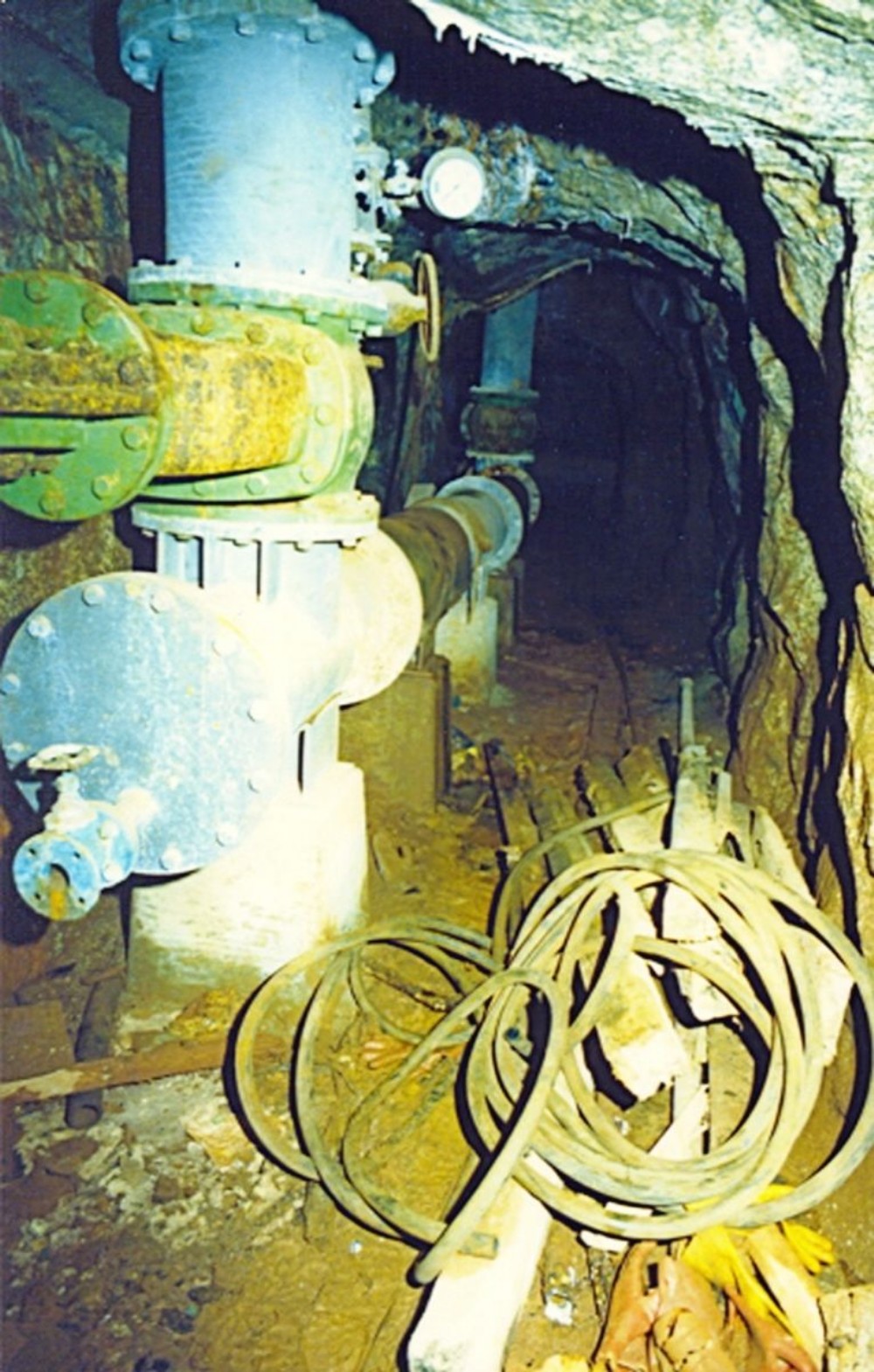 Outlet from below "D" lode sump, on 15 level. This is salt water that has been pumped up from the 19 level pumps.