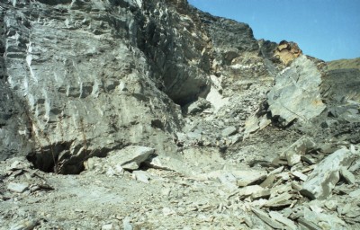 The foot of the chamber is on floor G - these chambers were variously labelled as "North Old Vein," B-series and so on. The numbering was in opposite directions, so this is B8. All this rock has now been worked away.