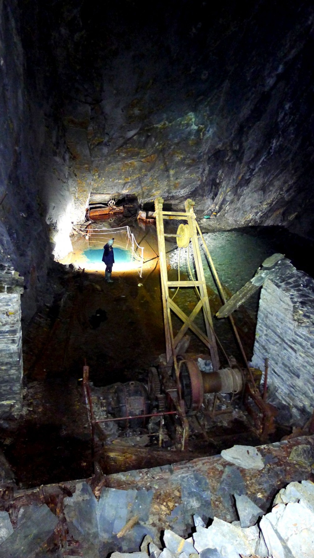 The short incline driven down below Cwmorthin's workings is now flooded and can be seen in this photo as a square of lovely clear azure water.