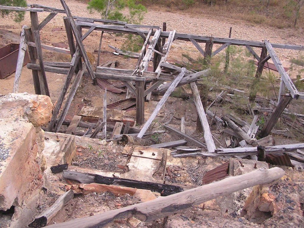 Looking down on the mill from the road level/feed hopper position. The base of the stamps are clear.