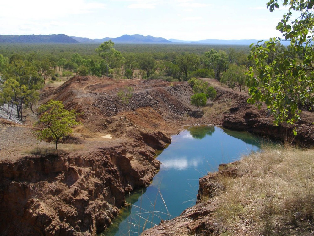 A view to the west from the top edge of the main open cut. The extent of the waste dumps is evident.