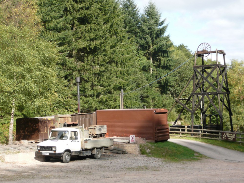 Tub tippler is behind pick-up truck. Winch for incline into drift is in the red building behind truck.