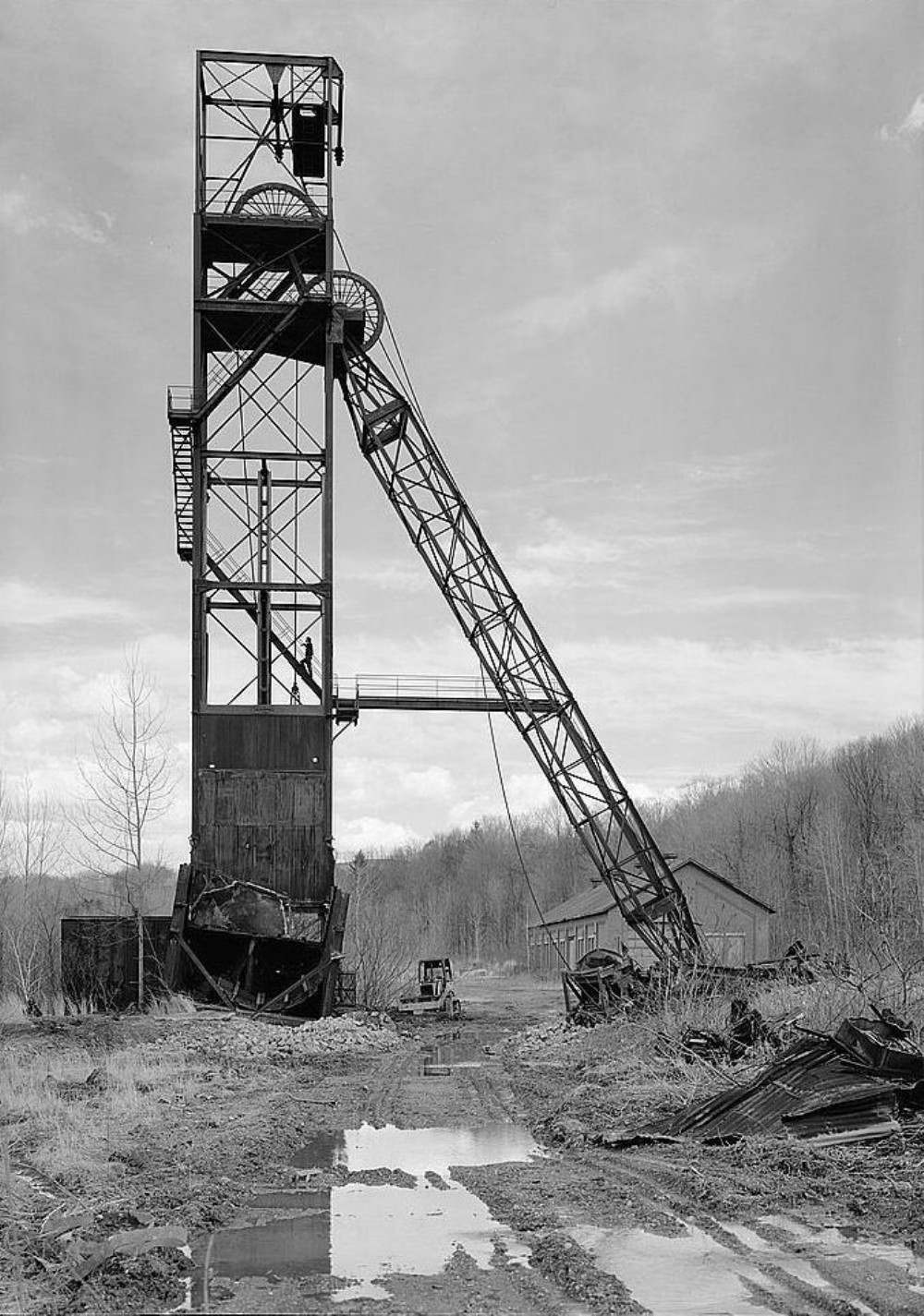 VIEW OF HEADFRAME FROM EAST, LOOKING WEST. Building beyond may have served as the wash house.