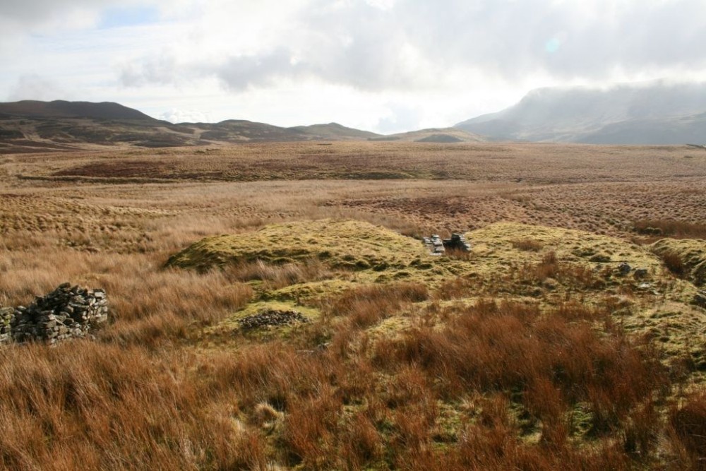 From here, the adit is off to the right, open workings are behind. Remnants of one small building visible, another is past the adit