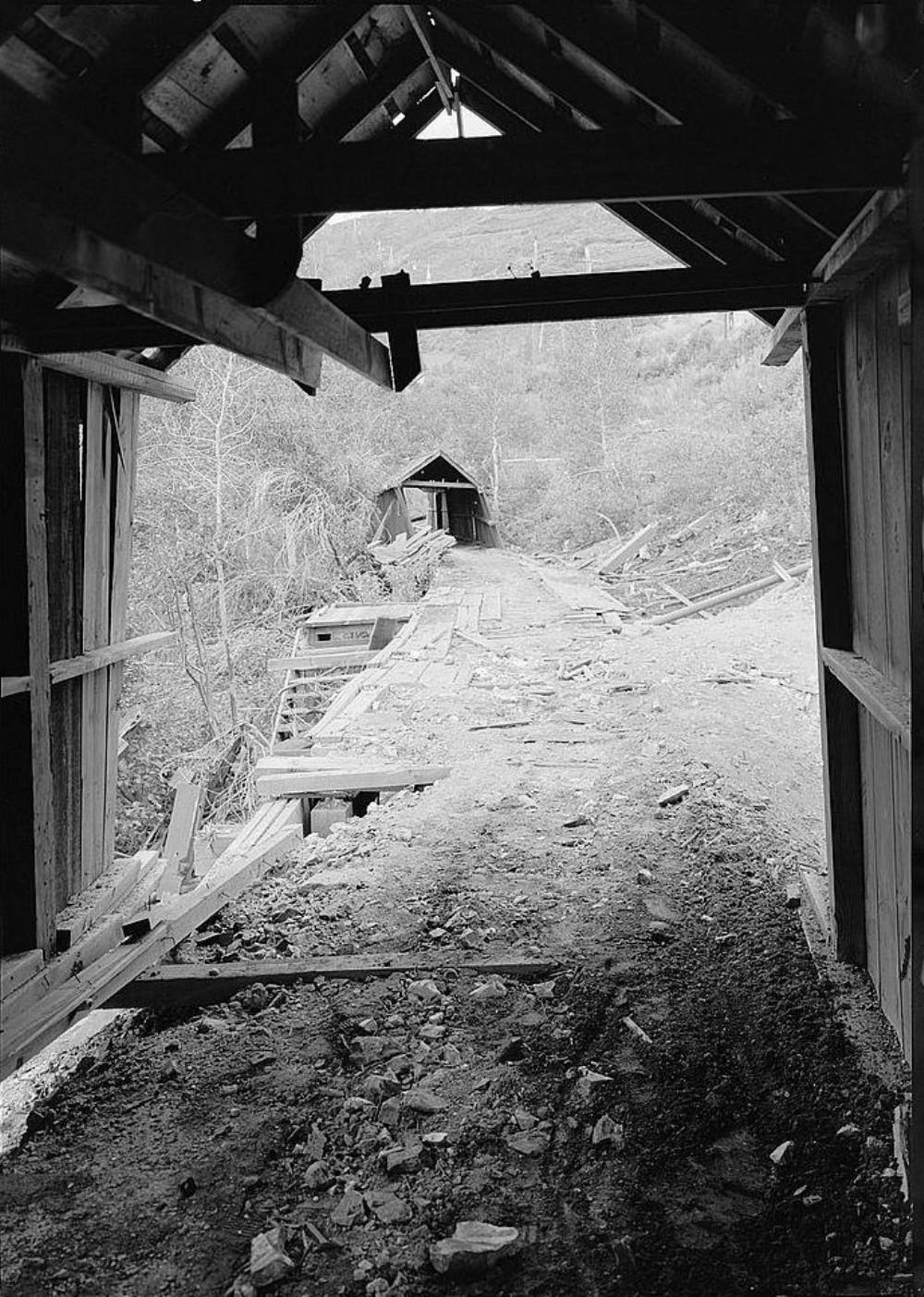 Jack E. Boucher, Photographer, August, 1971. VIEW ALONG COVERED ORE CAR TRACK SHOWING SECTION FROM WHICH COVER HAS BEEN REMOVED.