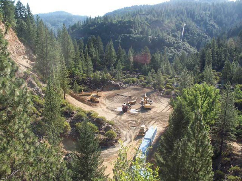 View from USEPA Command Post of material handling area where mercury and gold amalgam will be separated from sluicebox and rock debris