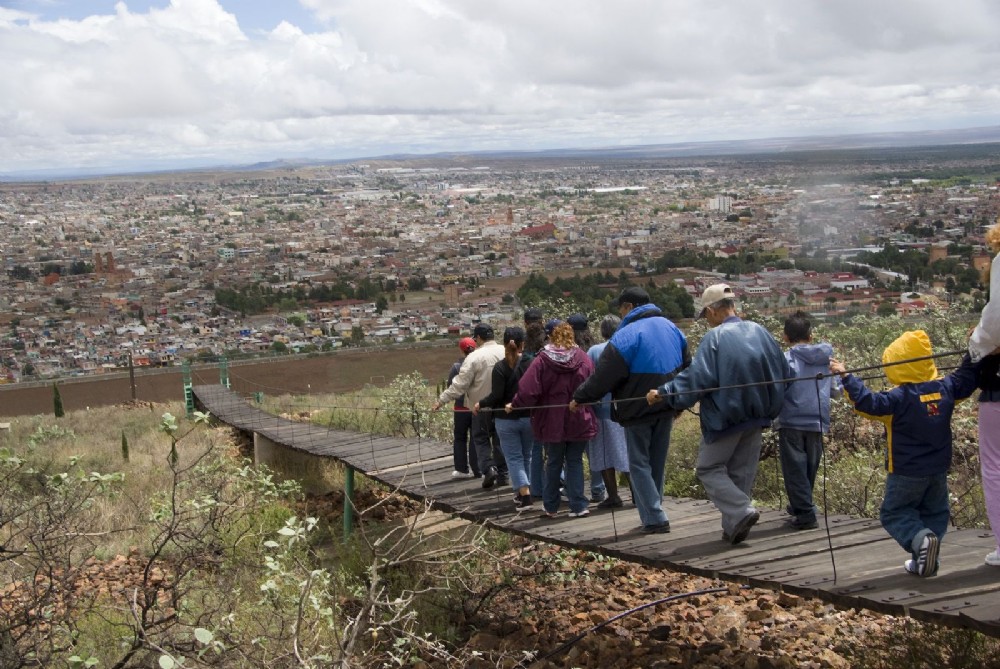 A walkway from the exit of the tourist mine descends the hill to the entrance. In some places the walkway crosses over old surface workings