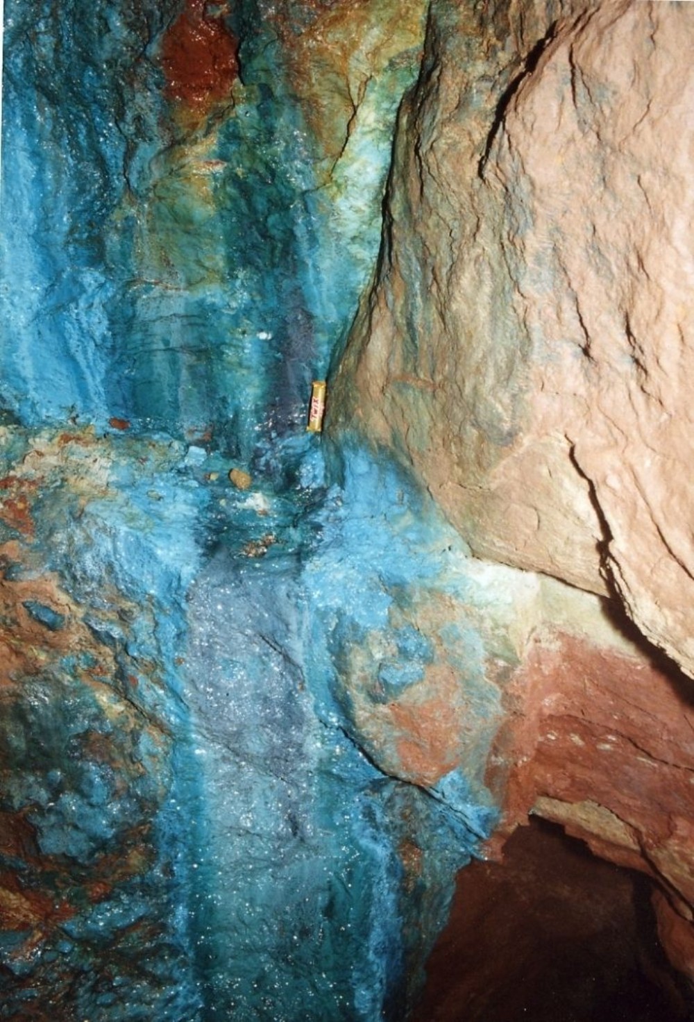 The reason for the name, Blue shaft, secondary mineralisation from the copper salts in the sandstone rock, circa 1987